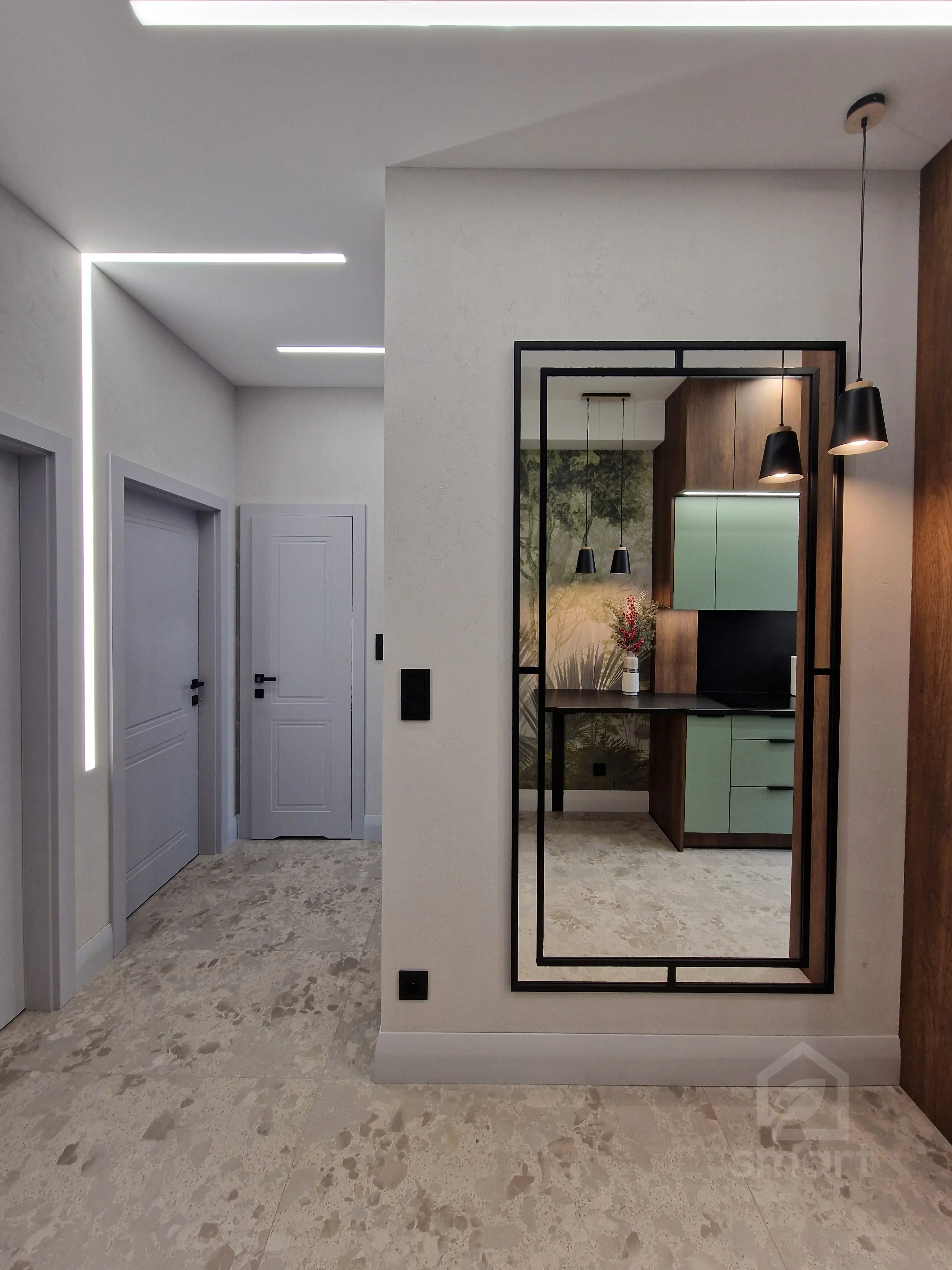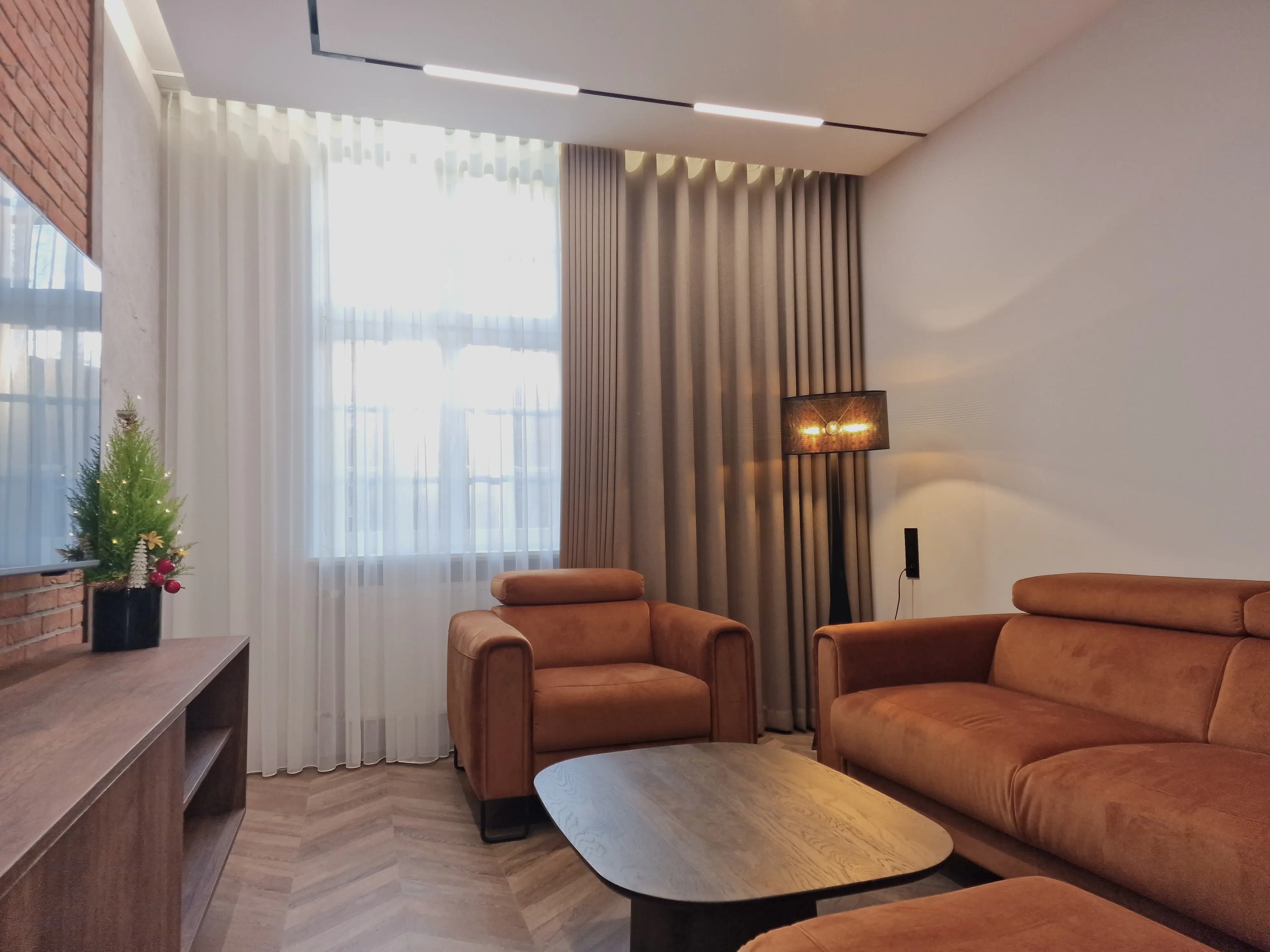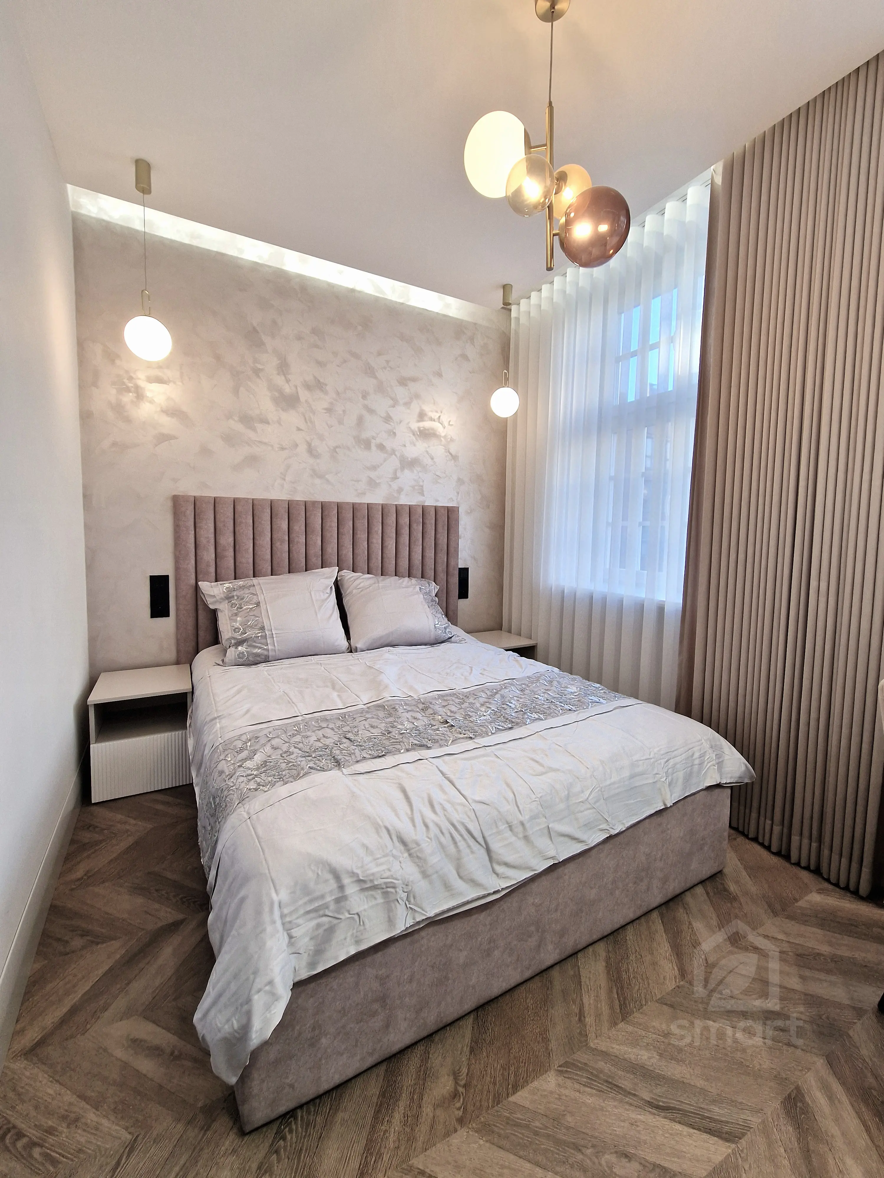 Celem było stworzenie nowoczesnego apartamentu, który jednocześnie oddaje charakter zabytkowego otoczenia chronionego przez Konserwatora Zabytków. W aranżacji wnętrza zastosowano połączenie cegły z tynkami strukturalnymi oraz elementami drewna. Klasyczny parkiet zastąpiono jodełką francuską w pokojach i salonie, natomiast w korytarzu i kuchni wykorzystano gresy inspirowane naturalnym kamieniem brukowanych ulic Starego Miasta.